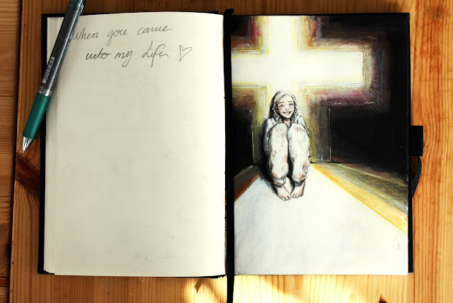 När du kom in i mitt liv - akvarell, akryl färgpennor och gelpenna